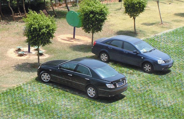 值得注意的是:如果消防車道作為平時車輛的主要通道,由于車輛行駛頻繁,且速度較快,這對植草格的使用及草皮的正常生長不利,反而影響綠化率和美觀, 在這種情況下,我們建議主要車輛交通道路仍采用混凝土路面。只是在消防緊急情況下才有消防車輛駛入的路面則采用植草格路面。同樣道理,停車場的通道路面建議采用混凝土路面,而停車位則采用植草格綠化車位。